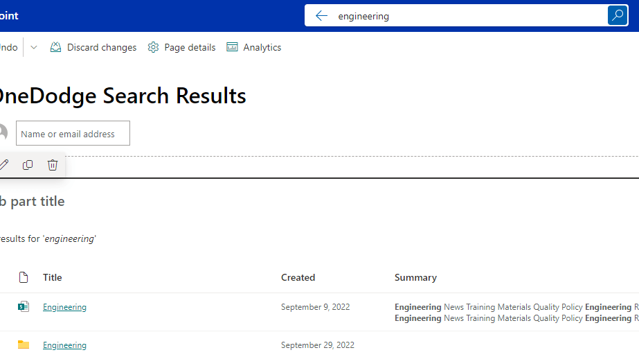 Create a new modern custom page in your site. I’ve named mine Custom Search Results. Add the PnP – Search Results web part to your page. If you have installed the PNP web parts, you should be able to click the add button, and search on the literal word “search” to find them.